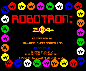 Set in the year 2084, Robotron is a single-screen shoot-em-up in which super-intelligent self-aware robots known as 'Robotrons' - designed and built to help mankind - have revolted against their creators and vowed to either reprogram the humans into Robotrons or, failing this, wipe-out the human race entirely. The player must destroy the robots and rescue the Earth's remaining human families. The player's only weapon is a multi-directional Anti-Robot Laser Gun. Used effectively, it will give players the power to destroy all the Robot waves, with the exception of the indestructible 'Hulk' unit. At the start of the attack wave, players will have three chances to wipe out the enemy and advance to the next wave. Every 25,000 points players are granted another chance to complete their mission. MAN, WOMAN, CHILD: These are the only three types of human clones left on Earth. Defenseless and easy prey to the Robots, they are totally dependent upon players for their survival and will wander aimlessly until the player makes contact with them. Touching them will place them under the player's protective powers and earn them the following points: 1,000 for rescuing the 1st human; 2,000 for the 2nd: 3,000 for the 3rd; 4,000 for the 4th; 5,000 for the 5th; and 5,000 for every additional human saved. At the beginning of each new wave and when the player loses a turn, rescue scoring will again begin at 1,000.