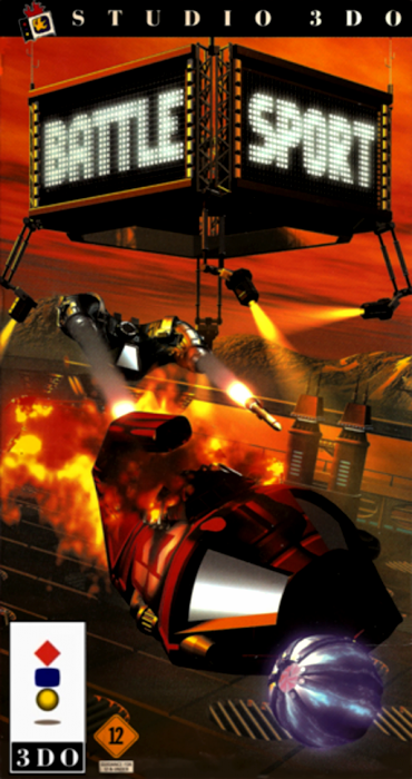 Battlesport simulates the sport of the future. Choose your vehicle and enter the arena to face your computer opponents to see who scores the most goals before the clock runs out. Scoring isn't easy. The ball constantly bounces over the arena, retrieved by a player constantly bombarded by opponents. A variety of weapons are available to shoot your competitor, and anyone that takes a hit while carrying the ball loses possession, sending the ball bouncing across the arena. Taking too many shots results in a temporary inability to take part in the action while your opponent happily scores goals. Winning matches increases standing in the rankings and the acquisition of cash to purchase a better vehicle and enhanced offensive or defensive items.