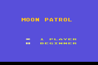 The moon is under attack from a horde of aliens, and you must stop them in your armed buggy. Drive along the surface shooting the aliens and avoiding their bullets. The surface is not flat, there are craters and rocks to avoid contact with, and landmines on the surface. Flying saucers create new craters when they crash. The 25 restart points are letter-coded.