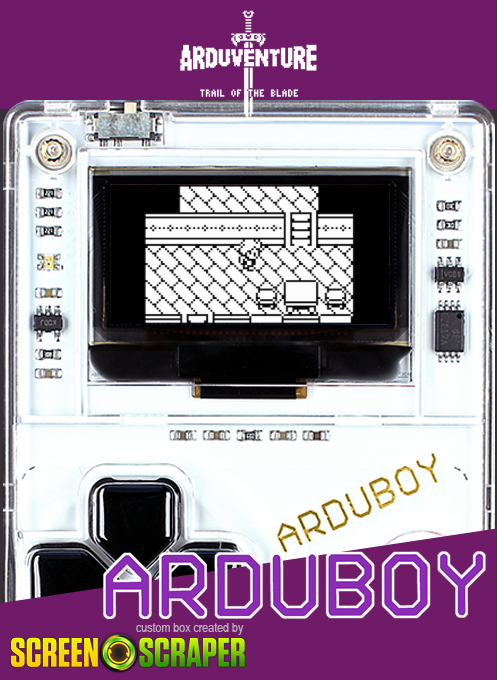 Arduventure is a classic top-down 8-Bit RPG with original monochrome graphics and musical score made exclusively for the Arduboy. Collect items, weapons, armor, amulets and magic to fight enemies in turn-based battle system.