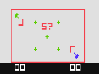 Videocart-2 features two game programs. Desert Fox. In this game you control one of two tanks engaged in a battle. The goal is to earn as many points as possible by shooting your opponent. On the game screen there are two barriers and five mines. The tanks can not shoot through the barriers or mines making them ideal for cover. The tanks can drive through the barriers, but attempting to drive through a mine will cause your tank to explode awarding your opponent a point. Shooting Gallery. In this game you control a rifle on the left side of the screen and need to hit a target on the right side of the screen. The goal is to earn as many points as possible by hitting the target with as few misses as possible. You can play with no time limit at an average speed, or increase the challenge by adding a time limit and increasing the game speed. This game can also be played by two players to see who can score the most hits.