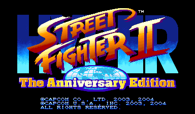 Hyper Street Fighter II: The Anniversary Edition is a competitive fighting game by Capcom that was originally released for the PlayStation 2 in 2003 in Japan and in 2004 in North America and Asia. Released to commemorate the 15th anniversary of the Street Fighter series, Hyper Street Fighter II is a modified port of Super Street Fighter II Turbo in which players can control any versions of the main characters from the five Street Fighter II games previously released for the arcades. Although, originally released as a home console game, an arcade port was released shortly afterwards in limited quantities, turning it into the sixth and final arcade iteration.