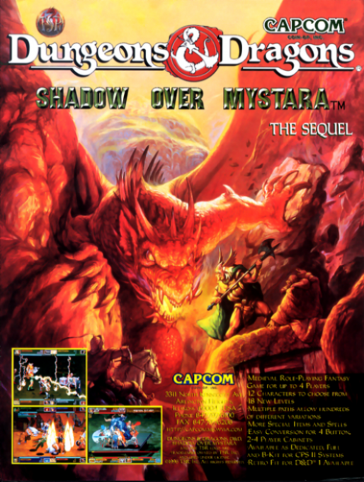 Dungeons & Dragons: Shadow over Mystara is an arcade game developed and published by Capcom in 1996 as a sequel to Dungeons & Dragons: Tower of Doom. It was also released on the Sega Saturn, packaged with Tower of Doom, under the title Dungeons & Dragons Collection. The game is set in the Dungeons & Dragons campaign setting of Mystara. It was one of the last 2-D arcade side-scrollers created by Capcom; only Battle Circuit (1997) came after Shadow over Mystara.