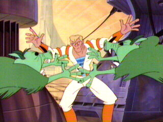 Space Ace is a laserdisc video game produced by Don Bluth Studios, Cinematronics and Advanced Microcomputer Systems (later renamed RDI Video Systems). It was unveiled in October 1983, just four months after the Dragon's Lair game, then released in Spring 1984, and like its predecessor featured film-quality animation played back from a laserdisc. The gameplay is also similar, requiring the player to move the joystick or press the fire button at key moments in the animated sequences to govern the hero's actions. However, the game's action was more varied with the player occasionally given the temporary option to either have the character he is controlling transform back into his adult form, or remain as a boy with different styles of challenges.