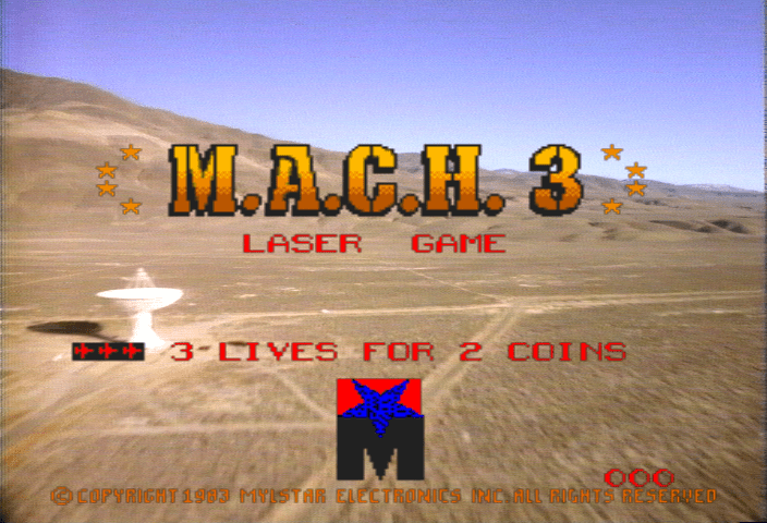In M.A.C.H. 3, you pilot either a Fighter plane or a Bomber plane and must fly around hitting targets on the ground or in the air while avoiding enemy fire. M.A.C.H. 3 used video footage from the laser disc and overlaid computer graphics for your ship and the enemy ships.