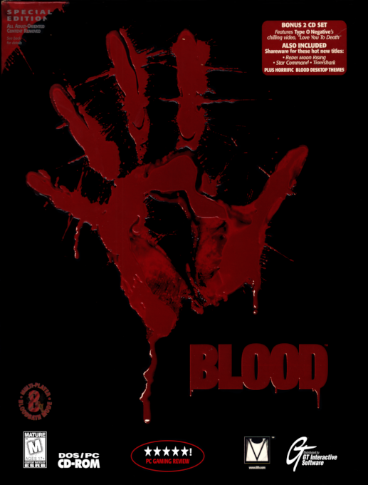 Caleb was once a feared gunslinger, until he met a woman who was involved with a mysterious cult known as Cabal. Caleb, too, is sucked in, and soon becomes one of the Chosen - the most favored worshippers of the evil god Tchernobog. But one day, Tchernobog inexplicably kills the four Chosen, including Caleb. Mysteriously resurrected years later, Caleb is out to get revenge, and learn why his lord cast him down so abruptly. Blood is a first-person shooter with horror elements, which uses the Build engine. Similarly to Duke Nukem 3D, the environment is interactive: many objects can be physically moved or affected in other ways. Destruction of landscapes is possible (although only in specific spots), with bullet holes being left by misplaced shots. The Build engine version is 2.5D, so there are rooms above rooms and puzzles which are based on this.
