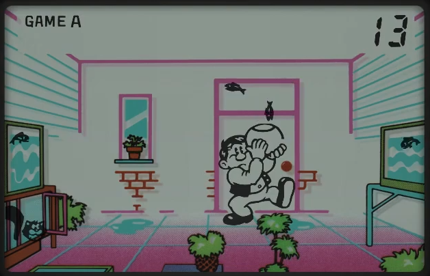 In the game, the player will transfer fish from one aquarium to another one via a fishbowl in a game similar to the previously released Fire. If a fish drops on the floor, the cat (similar in appearance to the one from Chef) will take it for himself as a tasty snack. The cat also appears as the alarm clock icon. When the game begins, fish will start jumping from the water tank on the right. As the player, they must make sure that they catch the fish in the fishbowl. Shortly after this, the fish will jump from the water bowl to the left, and the player will have to keep on catching it until it reaches the other water tank.
