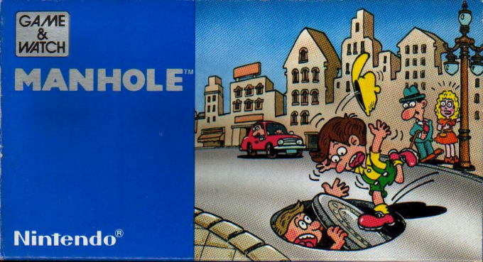 The gameplay features a character, using simple plates, to help people crossing the road unharmed at two different heights/levels. With time the frequency of people and their speed will increase. Game B, doesn't set itself apart from Game A, apart from more people crossing the roads at the beginning and a quicker onset of pace and frequency of people. The game Manhole is the first G&W to ever feature an extra live bonus system. Every 200 or 500 points (depending on the game-type), a little tune will indicate that one or more "misses" will be forgiven.