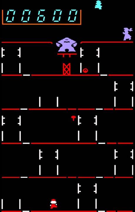 Move Mario to make him rescue his girlfriend, kidnapped by Donkey Kong. In odd levels, Donkey Kong throws barrels at Mario. Operate Mario and take him to the top of the building, making him avoid barrels. In even levels, operate Mario in order to remove all rivets from the girders by walking above them. Fireballs hang around: be sure Mario won't touch them! Additional info: don't let Mario move too left or right of the girders or he'll fall down; the left ladder on the second girder is a "safe position" from barrels; Mario can walk, not jump through the electric fence below Donkey Kong.