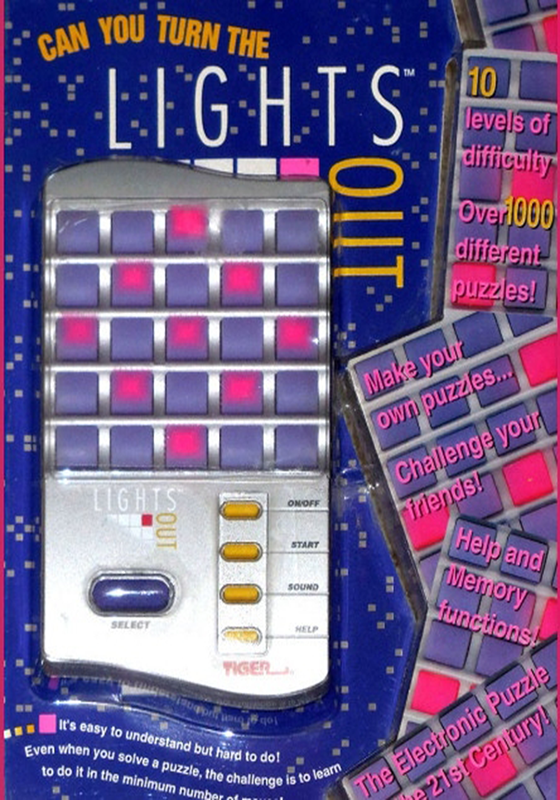 You are holding in your hands the most addictive,brain boggling puzzle ever created. The object of thepuzzle is simple...turn the LIGHTS OUT. It seems soeasy...at first. The problem is that every press of abutton has an effect on the puzzle. Lights that are onwill shut off, and “off” lights will turn on. (So, if youtouch a button that is lit, it will shut off. Conversely,touching an unlit button will cause it to light up).Moreover, when you touch a button, it not onlychanges that light, but it also changes the adjacentlights (those that are directly above, below, or next tothe pressed button). Every pre-programmed puzzlehas a solution. Your goal is to solve each puzzle inthe fewest number of “moves”, or steps.
