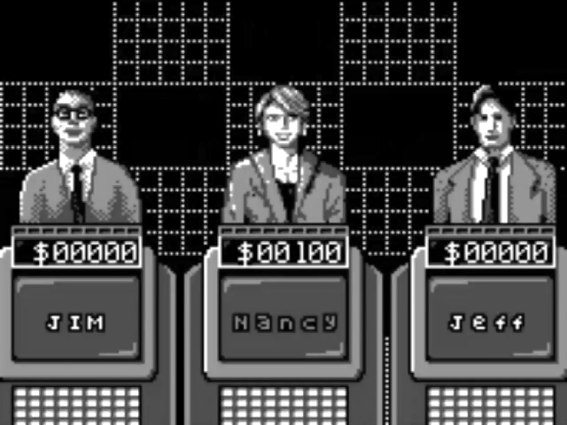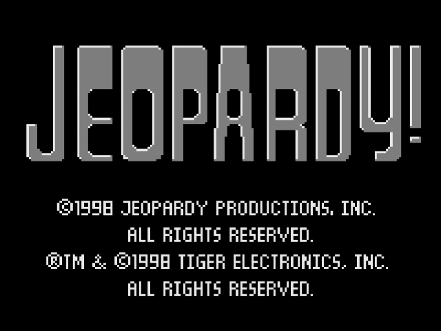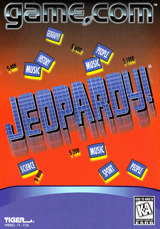Jeopardy! for the Game.Com is an adaptation of the popular TV quiz show in which contestants must provide the questions for the answers given. The game is for one or two players (via compete.com cable). At the start of the game, players can select their appearance from a choice of five male and five female options and can enter their name. The game is played using a touch interface. Selecting the next answer from the board, buzzing in and entering the questions is all done by tapping the appropriate icons. The game follows the rules of the show, with regular, double and final rounds and hidden daily doubles. The overall time limit for the rounds can be turned off, as can voice samples. The game includes hundreds of answers and questions.