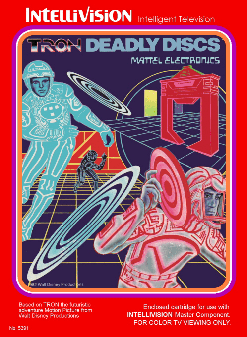 Based on the movie from Walt Disney, you play a man trapped in a computer world who must keep moving to avoid being hurt. Enemies will come at you three at a time, and will throw discs at you. You must keep moving to avoid them while also firing discs right back at them. There are different doors you can enter that will teleport you to another part of the room, giving you a chance to catch the enemies off guard. There are two skill levels, and the higher your score, the harder the game becomes. Do good, and your enemies will move faster, become more accurate, and the discs will go much faster.