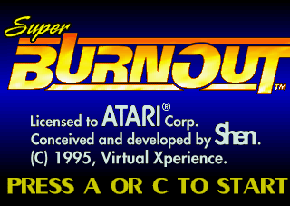 Super Burnout is an arcade-style superbike racing game inspired by Super Hang-On. Players control an ultra-fast motorcycle through races that take place on famous tracks throughout the world. There are six bikes to choose from with races on a total of eight different tracks. The usual racing game modes are present. There is a single race mode, a practice mode, and a championship mode. Players can also compete against a friend in a single-race versus mode.