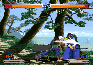 The Last Blade 2: Heart of the Samurai is a 2D fighting game which features anime-style characters that fight each other with swords, clubs, and even fishing poles. These characters pull off their special moves with that 'quarter-circle-to-half-circle' and 'double-half-circle' controller motions, reminiscent of Street Fighter.