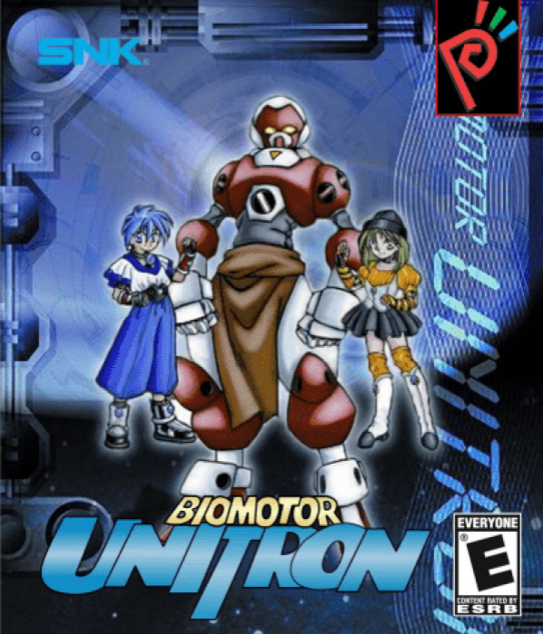 Biomotor Unitron is a RPG for the Neo Geo Pocket Color. After a meteor brings a new source of energy to the world, the construction of giant robots begins. These robots are used for entertainment and fight in arena fights against one-another for the title Master of Masters. You play a duo of characters that participates in these gladiator battles. You can control both characters and have to explore and perform quests to earn money and items to upgrade your Unitron robot with. You can talk to inhabitants of the city and buy new items at stores. The Unitron changes visibly when you apply upgrades and a great deal of upgrades are at hand. Over two hundred different weapon configurations are possible. Each weapon and part has a certain material and element. Fire weapons will work better against wooden robots than water-based robots. Beneath the city there are large dungeons where most quests will have to be solved and most items will be found. The battles are like in Pokémon, completely menu based. You pick whatever powers you want to use from a drop-down list.