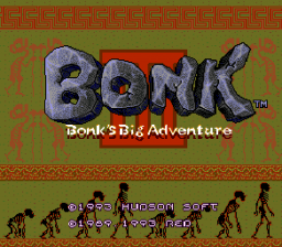 Bonk's Big Adventure is the third instalment in the side-scrolling platformer series. As in previous games, the player assumes the role of a caveman named Bonk who headbutts his way through various enemies in order to defeat King Drool. Familiar moves include swinging on trees, bouncing off walls, breaking blocks and climbing walls with his teeth. Compared to the previous games, he walks and moves a little faster.