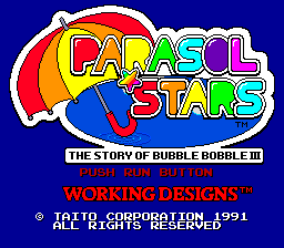 This sequel to Rainbow Islands sees a return to the gameplay of Bubble Bobble, but with Bub and Bob in their now-human forms. The boys must clear a series of screens of bad guys - who take slightly more esoteric forms than the angry caterpillars from Rainbow Islands - and again pick up a whole bunch of power-ups. But this time they're armed with umbrellas! Oh, okay then, parasols...
