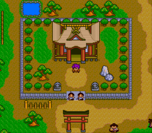 Many years ago, the legendary warriors of the Fire Clan were expelled from the Garden of Eden, and built the wonderful land Jipang. Thousand years later, Jipang is entering its medieval era. It seems that the province Hida is suffering from a curse placed upon it by the evil clan of the Dark Orchids. To destroy the Orchids, a young boy named Manjimaru has to fight the demons who protect them, find companions who would help him on the quest, and prove he is worthy of his great legacy as the descendant of the Fire Clan. Tengai Maky? II: Manjimaru is a sequel to Tengai Maky?: Ziria. Though not connected to its predecessor directly story-wise, the game is set in the same semi-humorous rendition of feudal Japan, and shares many recurrent gameplay-related and stylistic elements. The player navigates a party of up to four characters on a vast overworld divided into provinces, each with its own capital city and several smaller towns. Randomly encountered enemies are fought in turn-based, first-person view combat. Like in the previous game, magic spells must be obtained by locating Tengu Retreats; they can be then equipped on any character and swapped between them. Enemy hit points are displayed during battles, and characters are restored to full health when leveling up. Full-screen anime-style cutscenes with voiceovers advance the story. As opposed to the previous game, Manjimaru has several audio music tracks in addition to synthesized ones.
