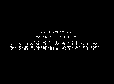 In the 20th century, you and a neighbouring country developed a nuclear strike force. Your neighbour's sole objective is to annihilate you completely. As tensions rise while you carry out espionage operations, you or your neighbour launch a pre-emptive first strike using bombers, missiles, submarines and anti-ballistic missiles. Nuclear destruction continues until all weapons are exhausted or a truce is negotiated.
