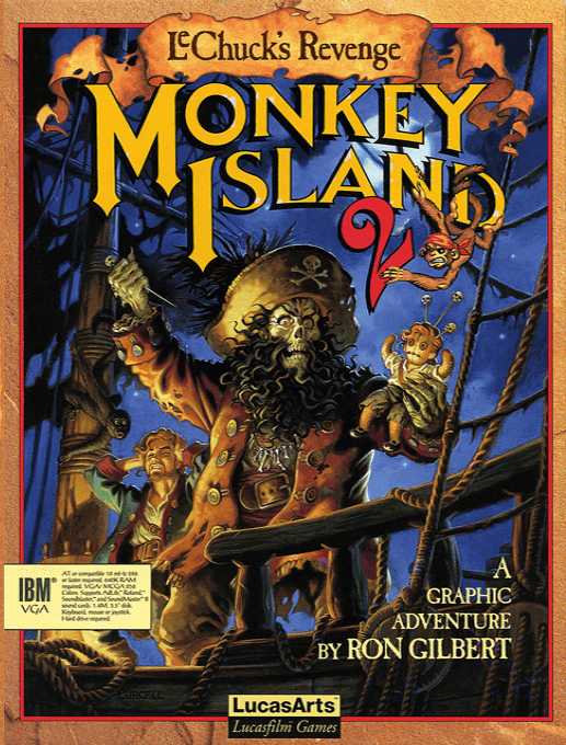 LeChucks Revenge is set in the fictional Tri-Island Area of the Caribbean, several months after The Secret of Monkey Island. The game opens in medias res as Guybrush Threepwood hangs on a rope above a hole, narrating to Elaine Marley on a separate rope the events that led to this situation. The flashback sequence starts on Scabb Island and constitutes most of the playable games setting. During it, Guybrush also visits Phatt Island, Booty Island, and Dinky Island, voyaging on two different pirate ships.