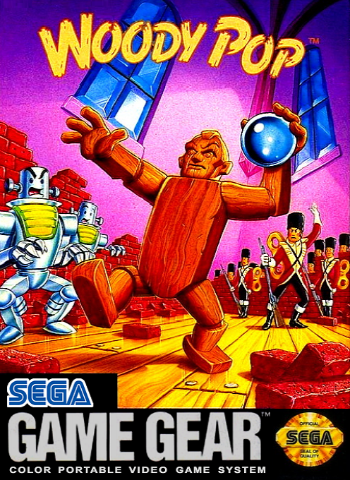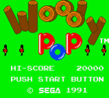 Every system must have a Breakout clone, and every self-respecting developer must have one, especially in the mid-eighties, following the success of Taito's Arkanoid. Sega's answer was called Woody Pop. With a wooden paddle, which in fact is Woody the tree spirit, you bounce your ball against bricks laid out in a big house filled with toys. The toys will come out to disturb you. When you hit "mystery bricks", wind-up toy soldiers or robots come out, obstructing your ball. On some levels, a toy train will cross your path as well. Speaking of wells, the bottom of the screen is not a big black hole as in most other games of this kind – instead the whole covers only a part of the wall, so that even if you miss the ball, it might bounce back in the corners. Once a room is cleared, you can choose freely between up to three adjacent rooms to progress to, making this game less linear than usual. Like any post-Arkanoid game, there is a range of powerups released from special blocks. Most are known from other games such as the double-ball, the growing bat or the "diamond ball", which destroys all blocks in its path without ricocheting. Some invented by Sega are the fire ball, which sets blocks on fire, allowing them to destroy even neighbouring blocks, and the big ball, which hits bricks with more power, thereby destroying brick with one hit that would otherwise have required several.