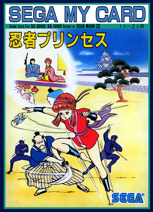 Ninja Princess known as Sega Ninja in the west, is a Sega System 1 arcade game by Sega. It is a top-down shooter/action game, in which you play as a princess disguised as a ninja who is attempting to stop the evil tyrant Gyokuro. The game was ported to the SG-1000 in 1986 exclusively for Japan, with an MSX port following shortly afterwards. It was also brought to the Sega Master System as The Ninja, however The Ninja makes several adjustments to the story and characters, as well as updating the gameplay.