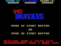 Earth is under attack from rows of bomb dropping aliens, and you need to defend it! The rows of aliens begin at the top of the screen, and you control a laser cannon at the bottom of the screen. Your goal is to earn points by shooting the aliens before they can land. The aliens march back and forth, and each time the end of the screen is reached they will drop one row closer to the bottom. Shoot them all, and you move on to the next (tougher) level, but if even one of them lands the game is over. Surprisingly the SG-1000 port of the game was one of the most accurate of its time, surpassing the NES and MSX versions which were the console's main competitors. Though it adds more color (the arcade version was simply black and white, with translucent overlays to mimic color), the SG-1000 version retains all the original graphics, whereas other ports (especially for Atari systems) re-drew the invaders due to various graphical restrictions. The SG-1000 version does not appear to have been released outside of Japan.