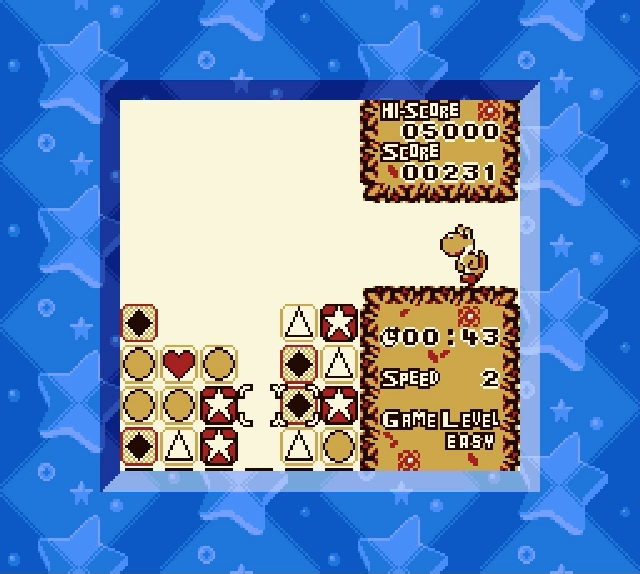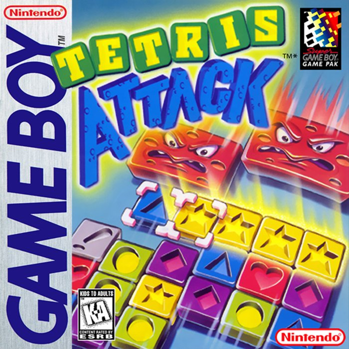 All is not well on Yoshi's Island! The devious king Bowser has cast a spell on the island's inhabitants, turning them into his mindless slaves. Only Yoshi has escaped its effects, and so he must set off to free his friends, and to defeat Bowser and break the spell. Tetris Attack is a fact-paced action puzzler featuring the colorful cast of characters from Yoshi's Island. A stack of blocks continually rises from the bottom of the screen, and the player controls a cursor which can swap any two blocks horizontally. Make a row or column of three or more and they'll clear, potentially creating combos from new blocks falling to take their place. Combos will send large garbage blocks to your opponent, which must be eliminated by clearing a piece that is touching it, turning it into normal blocks.