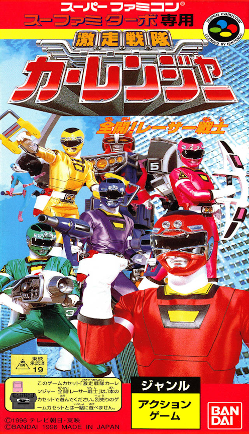 Gekisou Sentai Carranger: Zenkai! Racer Senshi Gekiso Sentai Karenja Zenkai! Resa Senshi?, Racing Squadron Carranger: Full Force! Racer Warrior) is the licensed video game of the Carranger series. It was released in Japan by Bandai in 1996, and required the Sufami Turbo accessory. Despite the fact that Carranger was adapted into Power Rangers: Turbo, the game was never brought to the North American market as such because, by the time Turbo premiered in 1997, the Nintendo 64 had been on North American shores for several months. The N64 had only just come out in Japan when the game was released, so not everyone had switched yet.