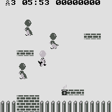 Balloon Fight is a simple platform action game very similar to the better known NES title of the same name. The player controls a creature suspended by a pair of balloons who floats around a room, and must pop the balloons of enemy creatures by landing on top of them. If an enemy touches the player's balloons, they will pop, causing the player to fall and lose a life. There are several different stages, each with a different layout and various objects such as platforms, deadly spike pits, and fans that push the balloons around. The playfield also loops horizontally, and both the player and the enemies can leave one side of the screen and return through the other. When all enemies on a stage are defeated, the player is awarded a bonus for time remaining and moves on to the next stage.