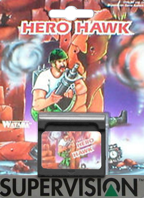 Hero Hawk is a top-down action game similar to Sega's Crack Down, in which the player must infiltrate enemy strongholds and plant bombs at certain locations. Each mission is divided into interconnected rooms, which each contain various hazards, enemy soldiers, item containers, and of course bomb markers. When all bombs on a stage have been planted, the boss area opens up, and the player must defeat the boss to complete the mission. There are a large variety of items that can be found within missions. Food will refill the player's life, grenades will grant an extra screen-clearing bomb, ammunition will let the player shoot faster, boots will increase walking speed, and the ever-useful SuperVision console will let the player access a map of the stage, which indicates which rooms still need bombs placed. However, if the player takes too many hits and dies, all power-ups are lost. There are only a limited number of continues.