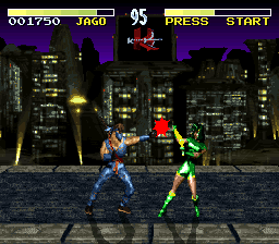 In the distant future, a monopolistic and technological corporation called Ultratech organizes a fighting tournament known as "Killer Instinct". Many fighters answer the challenge to participate, including several of Ultratech's experimental warriors. To increase the tournament's challenge, Ultratech utilizes a technology that can create bridges between alternate dimensions, releasing a creature known as Eyedol. Eyedol is a two-headed ancient warrior that was imprisoned along with his bitter rival, Gargos. Some warriors enter the tournament to seek glory or escape. Other fighters are attempting to bring an end to Ultratech's corruption. Killer Instinct is a Rare developed fighting game published by Nintendo (and distributed in the arcades by Midway). Killer Instinct (or "KI" among its fanbase) is a 2D fighting game that features 3D rendered sprite based graphics. Players choose from 10 characters: Orchid, Cinder, Jago, Glacius, Fulgore, Riptor, Sabrewulf, Spinal, T.J. Combo, and Thunder. Killer Instinct is known for its heavy combo based fighting system, allowing players to pull off moves that land an insane number of hits on their opponent, the highest being the "Ultra Combo". The gameplay is also known for its use of combo breakers, finishing moves and stage fatalities, double energy bars, and dance-music inspired techno soundtrack.