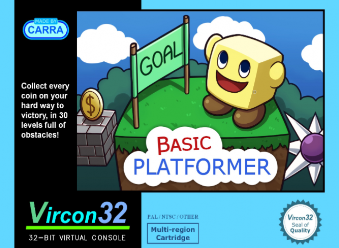 A platformer game, simple but quite polished. Includes 30 levels split into 3 worlds. This game is also meant as an example project showing how to make a basic full game for the console.